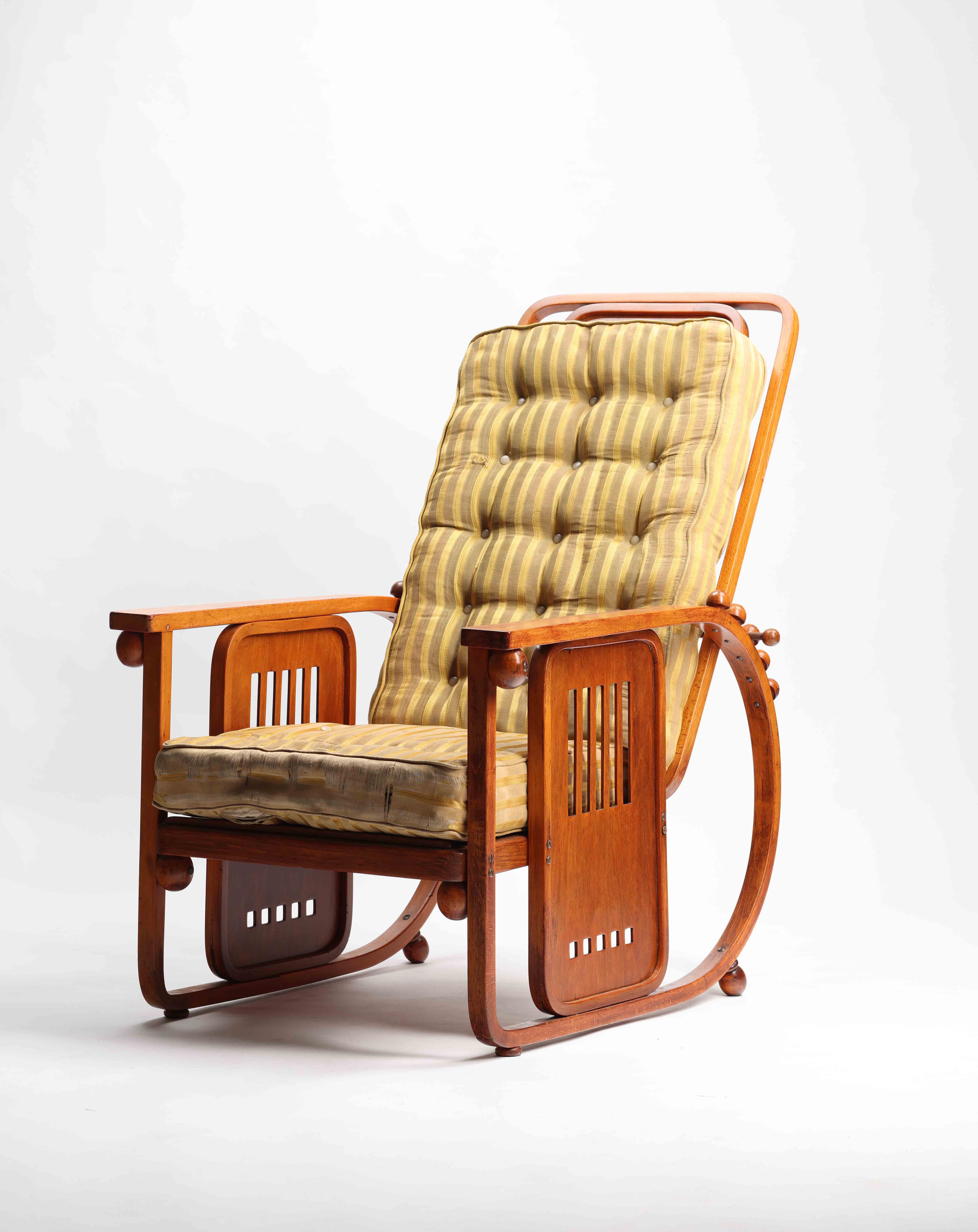 Р.Ш. : Санаторій зведений в 1904-1905 роках за проєктом Йозефа Гоффмана. Цей проект став одним з перших кроків до формування сучасної австрійської архітектури. Замовником був промисловець Віктор Цукеркандль. В 1903 році він придбав ділянку землі неподалік Відня, як мінеральний курорт з лікувальним парком. І згодом там був збудований санаторій лікувально-відпочинкового типу. До 1927 року санаторій перебував під його управлінням, а після смерті — під керівництвом родини. У 1938 році, внаслідок процесу аріїзації, сімʼя втратила майно, а меблі санаторію було знищено. Під час Другої світової війни будівля використовувалася як військовий госпіталь, а у 1945 році була реквізована радянськими окупаційними військами. Сьогодні санаторій функціонує, як будинок для людей похилого віку. Що стосується крісла, його серійне виробництво здійснювали Wiener Werkstätte, а згодом фабрика J&J Kohn, яка зробила модель доступною поза межами санаторію. Крісло, представлене на нашій виставці, — це виріб фабрики J&J Kohn, датований 1906 роком.