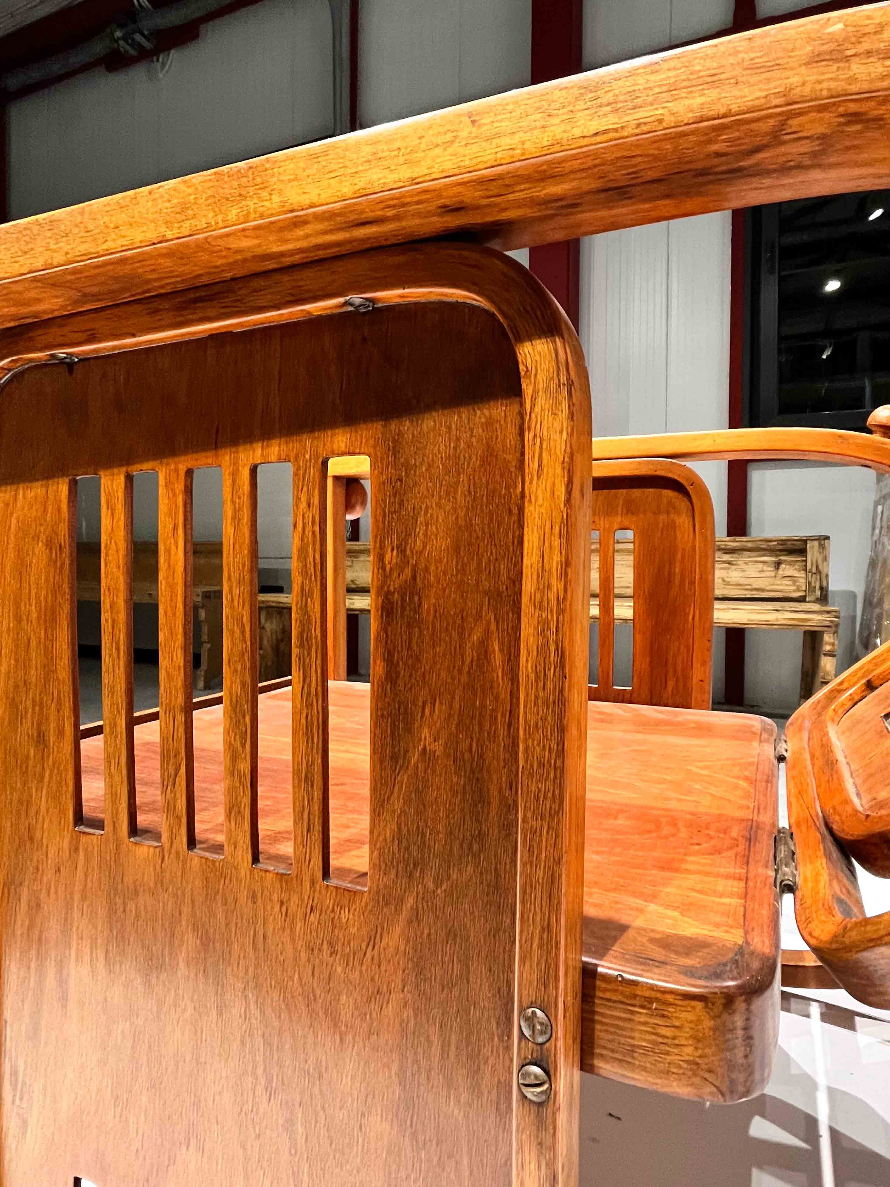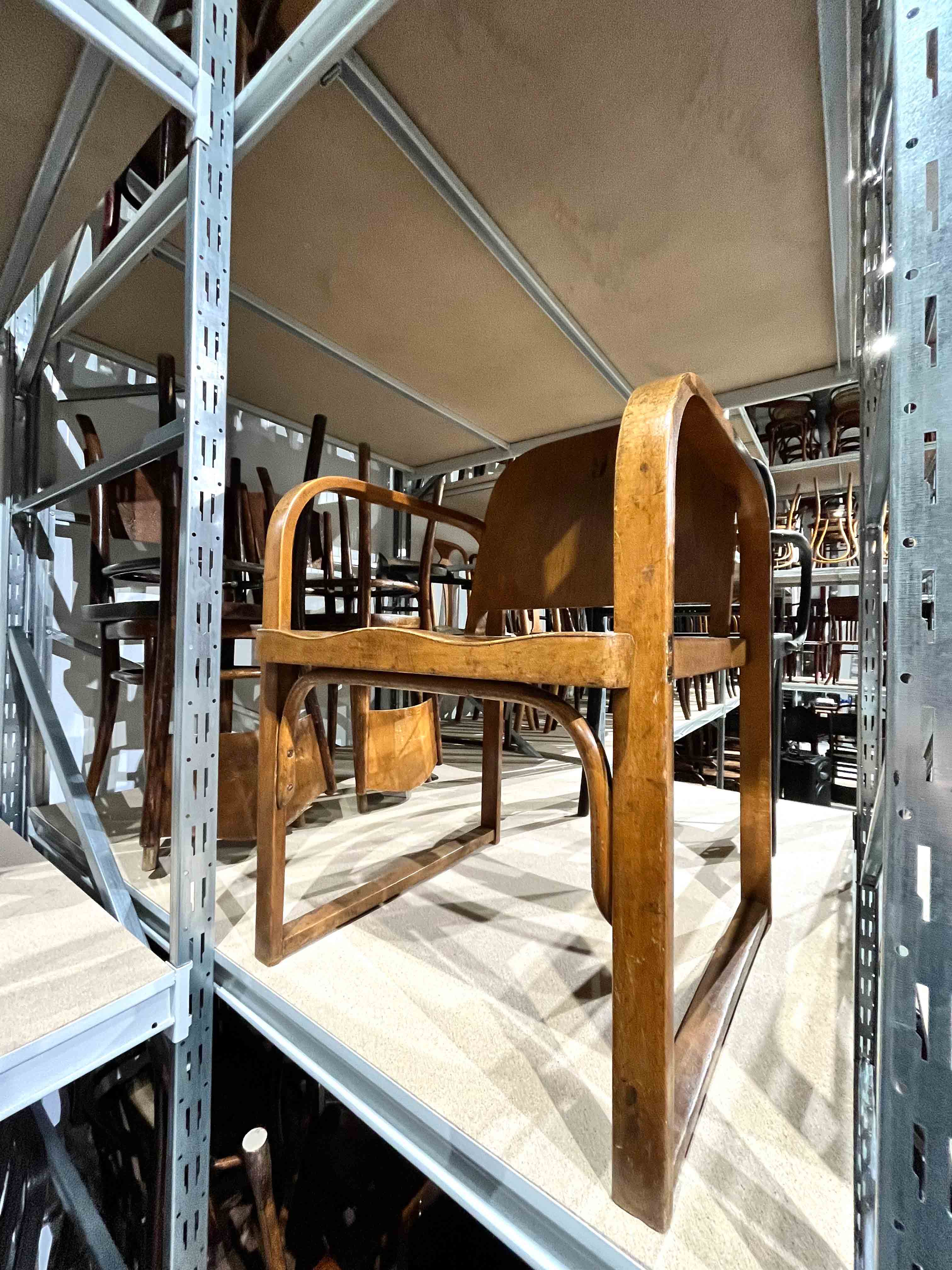 Р.Ш. : Аналогів Sitzmaschine в колекції немає. Водночас ми маємо крісла, стільці й столики фабрик Thonet та J&J Kohn за дизайном Йозефа Гоффмана, зокрема виготовлені для віденського кафе-кабаре Fledermaus. Раніше у Львові можна було часто зустріти такі меблі, пізніше їхня кількість зменшилась, через різні причини. Велику кількість гнутих меблів ми знаходили на сході та півдні України — у Харкові, Запоріжжі, Одесі, Дніпрі, Києві — і, що цікаво, рідше у Львові. Наша географія пошуків охоплює як Україну, так і Європу..