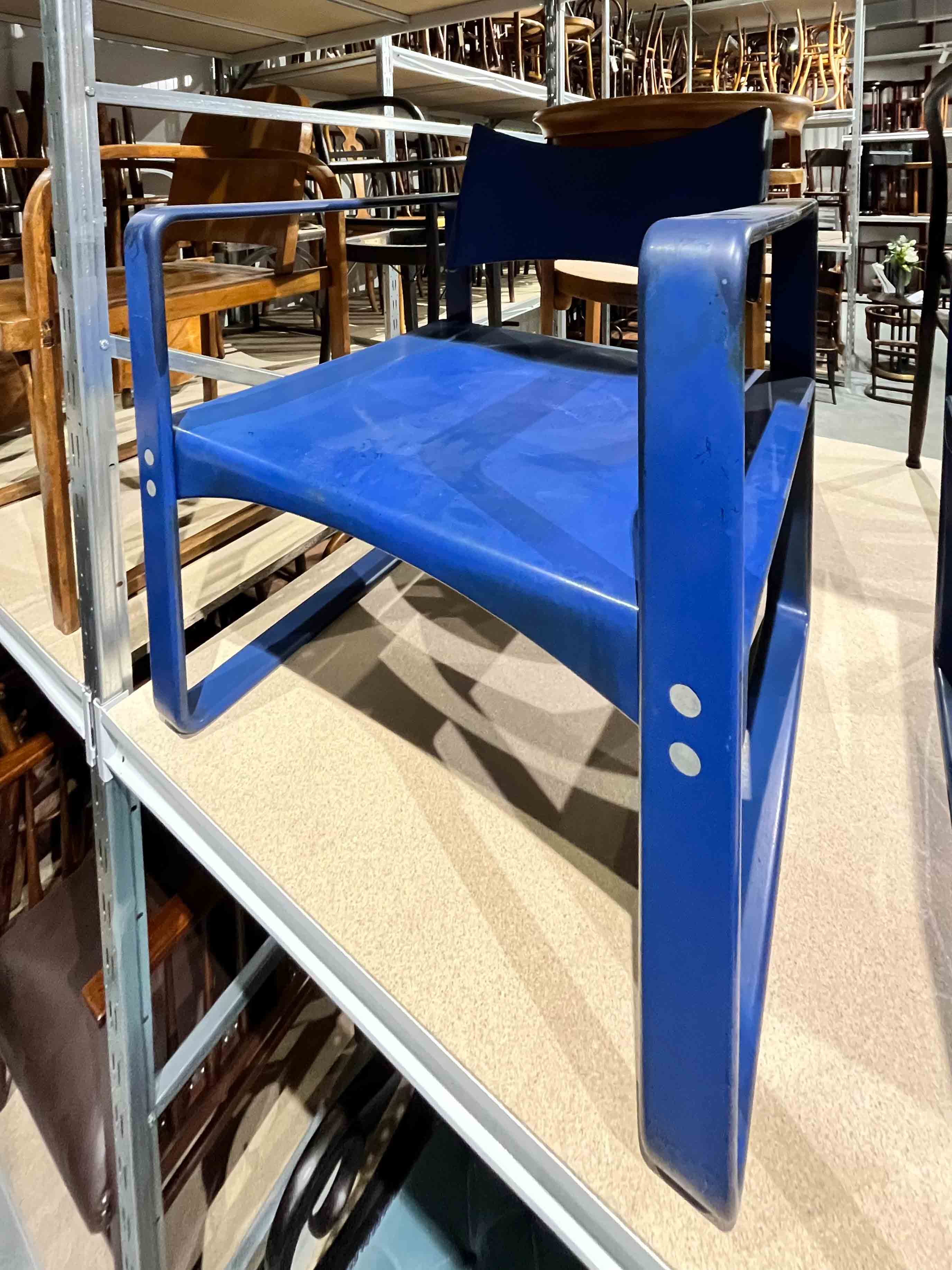 Звісно іноді до нас потрапляють предмети іншого періоду. Наприклад, ці два садові крісла синього кольору – колаборація Вернер Пантон та Thonet датуються 1966 роком. Сидіння і спинка виготовлені з фанери, а конструкція ніжок з пластику. Ми їх придбали в Амстердамі. Інше крісло, датовані теж приблизно 1960 роком, фабрики Татра з Чехо-Словаччини.