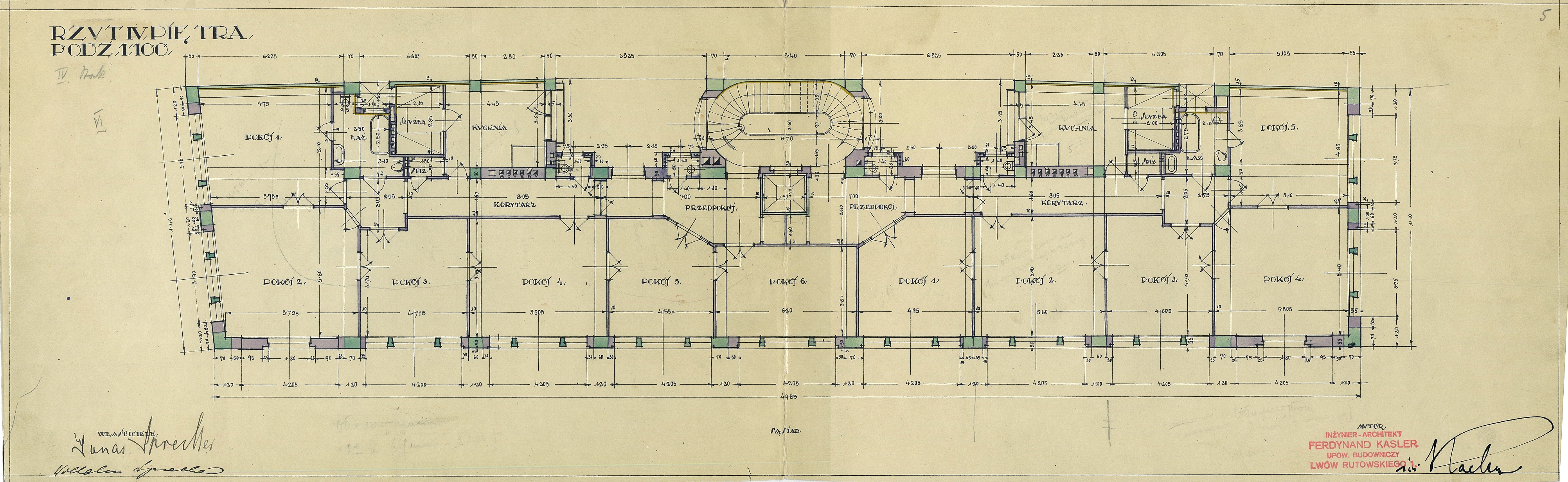 Coming back to the space itself, except for shops and offices, the building also housed luxury flats on the third to fifth floors. Apartments had from 5 to 8 rooms with panoramic views of the city center. One of the inhabitants was a famous Lviv painter Fryderyk Kleinmann[17]. Together with Kazimierz Sichulski, another well-known Lviv artist, he created a gallery of caricatures of writers and artists in the Atlas restaurant in Lviv. In the 1930s, he mainly devoted himself to painting and stage design, as well as designing costumes and puppets for theatres in Lviv: the Semafor satirical theatre, the Jewish Theatre, and the Azazel and Ararat theatres in Warsaw[18].
