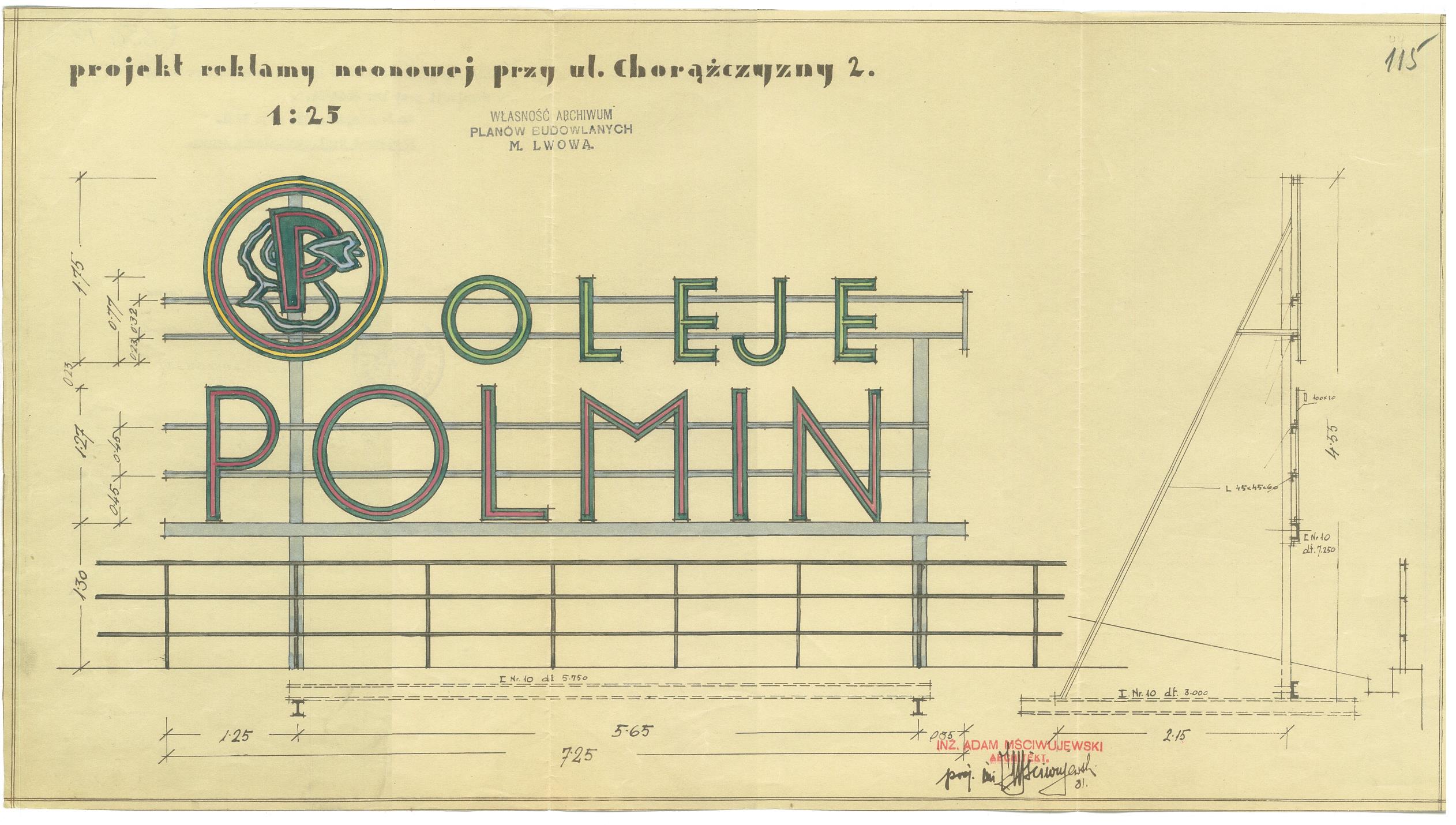 By the way, the neon on the skyscraper’s facade was specifically designed for this architectural project by Warsaw Neon Workshop[10]. Archival photos reveal a large neon sign installed at the top of the building. It belonged to the local Galician oil company, “Polmin”, which had its headquarters in the same building, and a refinery located in the nearby town of Drohobych.