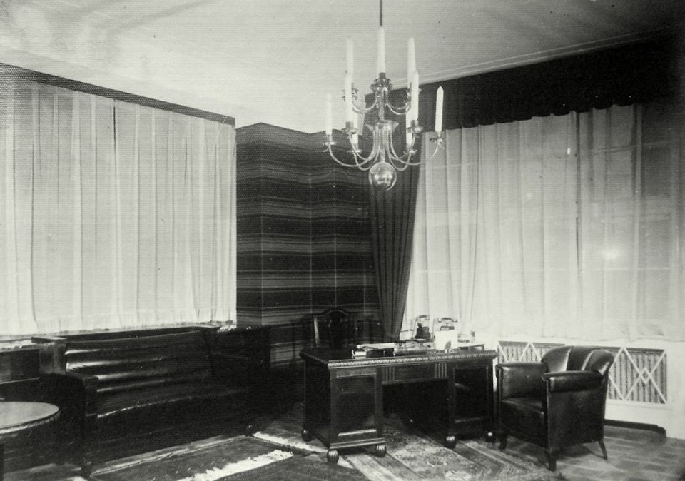 Turning now to the facade, it definitely lacks decoration, but the forms and size of the windows, glazed risalites, and shiny mica plaster create a play of volumes and light. Not plaster mouldings, as on historicist buildings, but rational usage of light, shadows, transparency, and streamlined forms, which embodied the velocity of that time, were the main beauties of this house.