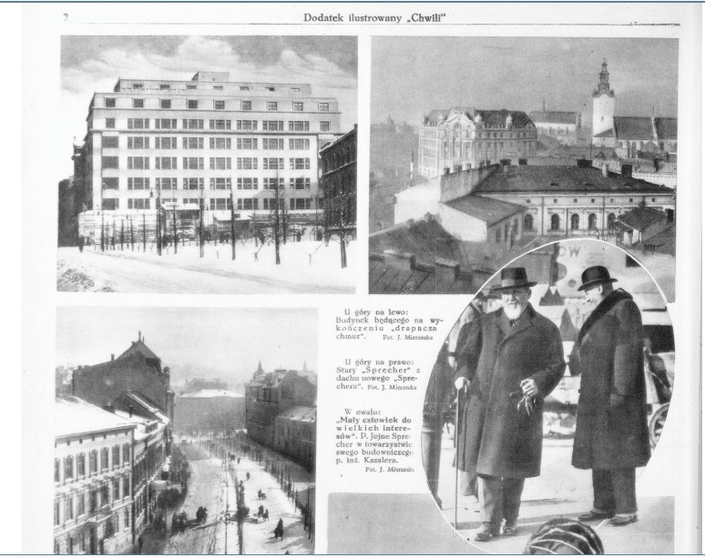 In an interview with the newspaper “Chwila” in 1927, Sprecher speaks about his plans to build the second, modernist skyscraper, and that he is very much attached to the city: “I own a dozen or so tenement houses in Lviv, and just yesterday I bought a plot of land for a new building on Akademiczna Street… I have numerous expenses, taxes, the upkeep of around 20 guards, and children…I don’t like to travel, I’ve never left Lviv… I stick to the belief that home is the best place. At least a man can keep an eye on his own property.”[23]
